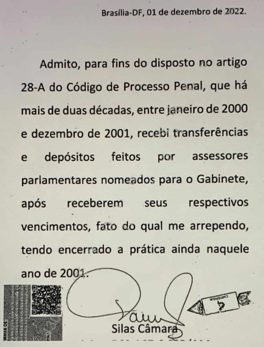 - Foi acusado de se apropriar do salário dos funcionários de seu gabinete. Para se livrar da cassação e prisão, assinou uma confissão. Veja abaixo.