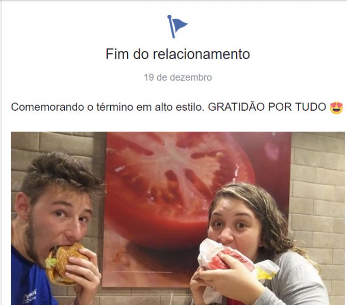 Casal celebra fim de namoro em lanchonete e post viraliza na internet
