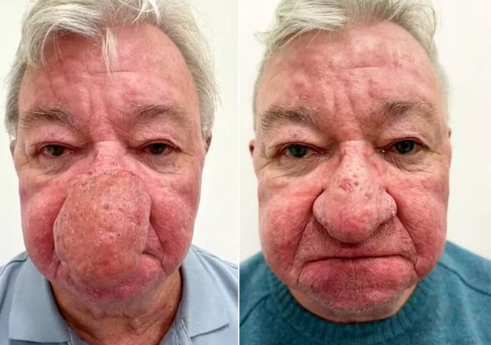 O escocês Gerard McAliece, de 68 anos, superou um dos casos mais severos de rinofima já registrados no Reino Unido, uma doença que fez seu nariz crescer progressivamente por seis anos, obscurecendo seu rosto e, até mesmo, impedindo-o de beijar a esposa.