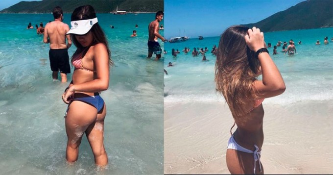 Uma foto que viralizou nas redes sociais está deixando muitos internautas intrigados. Na imagem, uma jovem aparece usando um biquíni com a parte de cima quadriculada nas cores vermelha e branca, mas a parte de baixo aparentemente tem duas cores.