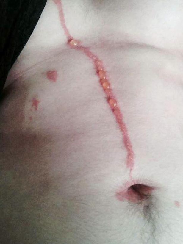 Dylan Thomas de 21 anos tomou um grande susto durante uma viagem para Bali, o jovem estava a passeio com os amigos quando percebeu um rastro vermelho, estranho, que se alongava em alguns centímetros por sua barriga.