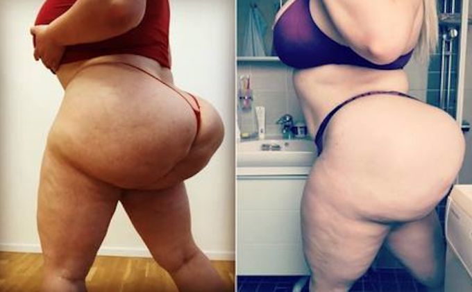 A modelo consumiu dezenas de pizza e 12 quilos de nutella por dois meses para engordar. Em seguida retirou a gordura das costas, braços e coxas para colocar nas nádegas.