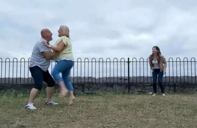 Andy de 51anos  e Sharon Price de 52, resolveram se casar e fazer uma surpresa para os convidados fazendo uma apresentação de dança no estilo Darty Dancing, o casal queria reproduzir a clássica cena do filme onde o personagem de Patrick Swayze levanta Baby no ar, mas o ensaio acabou terminando mal.
