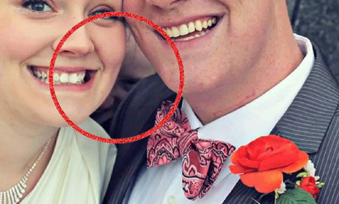Na imagem, é possível ver um rosto vem atrás dos noivos Kevin e Christina. No momento que a foto foi tirada, não tinha ninguém atrás do casal, o detalhe só foi percebido dias depois por uma outra pessoa. Veja mais de perto:
