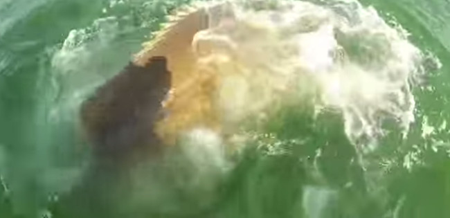 Vídeo mostra quando enorme criatura marinha engole tubarão fisgado