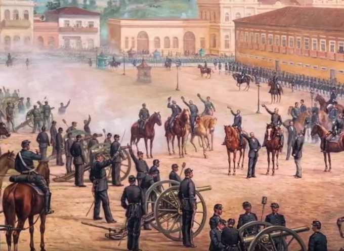 Para alguns historiadores, a primeira república brasileira não foi proclamada, mas sim aclamada pela pouca resistência que encontrou por parte da Monarquia. Uma das imagens que retrata a cena é a tela Proclamação da República, de Benedito Calixto.