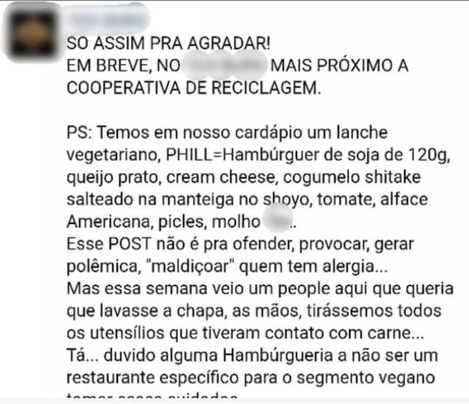 Segundo um portal do grupo Globo, a publicação também falava sobre clientes que teriam ido ao local e solicitado um lanche vegetariano que fosse preparado com utensílios que não tiveram contato com carnes.