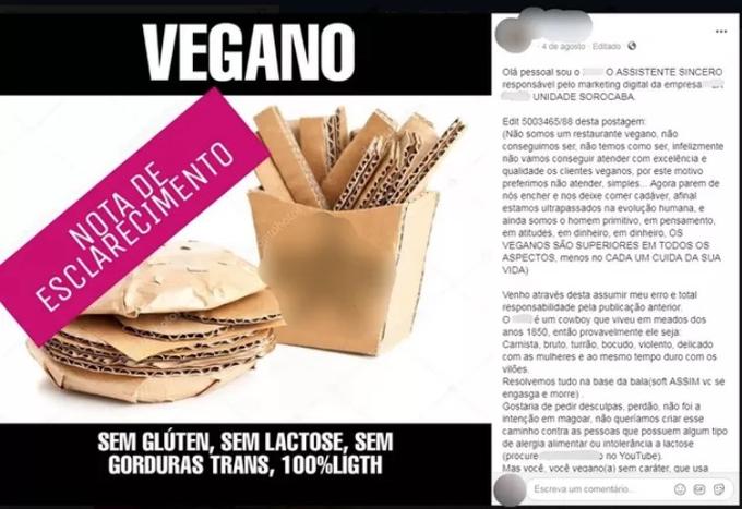 Uma hamburgueria localizada em Sorocaba (SP), causou alvoroço nas redes sociais neste fim de semana. Isso porque o estabelecimento postou uma foto de um lanche de papelão e o ofereceu aos clientes veganos.