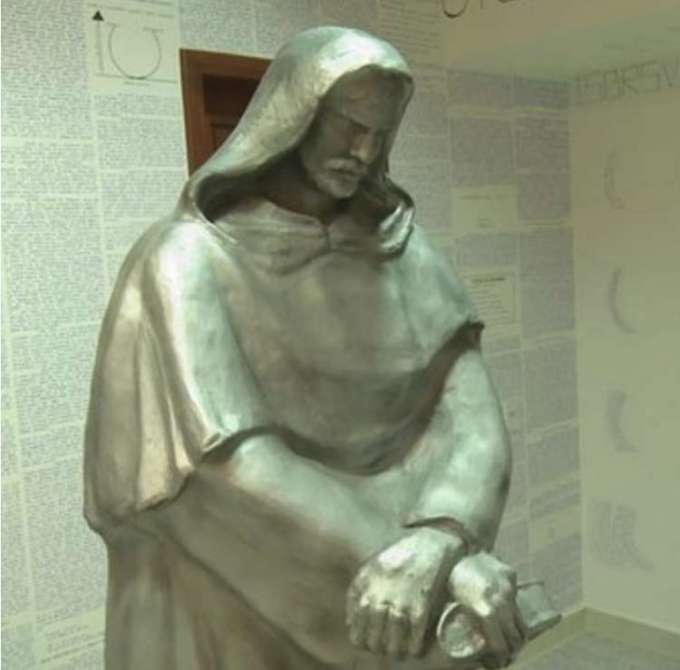 A estátua de Giordano Bruno é uma réplica da que existe no Campo dei Fiori, em Roma, a família não sabe exatamente em que momento o artefato entrou na casa, a peça foi produzida na capital acreana e levada à residência na semana passada em um momento que o jovem estava sozinho.