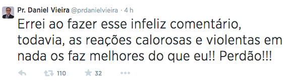 Com a repercussão o religioso apagou o comentário e tentou se retratar: