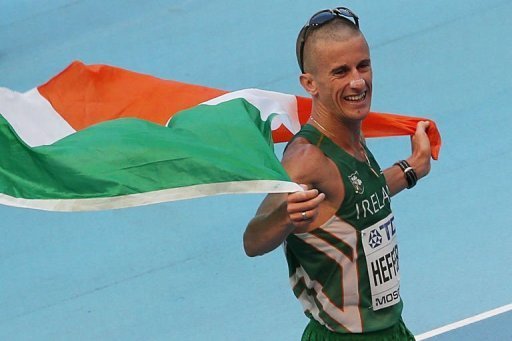 O irlandês, de 35 anos, quarto colocado nos Jogos Olímpicos de Londres-2012, venceu a prova com o melhor tempo da temporada (3h37:56) e acabou com o domínio russo na marcha em Moscou, depois dos triunfos dos atletas locais nas provas de 20 km feminina e masculina.