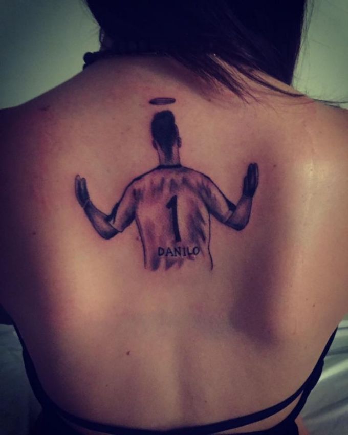 Na desenho gravado no corpo, Danilo aparece como um anjo e com a camisa 1. Na legenda da foto, ela escreveu a seguinte frase: