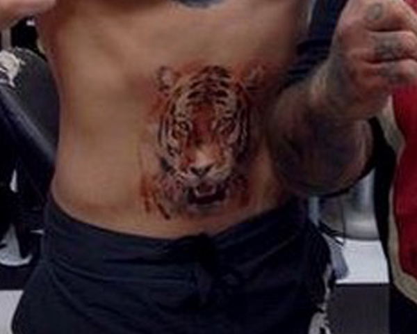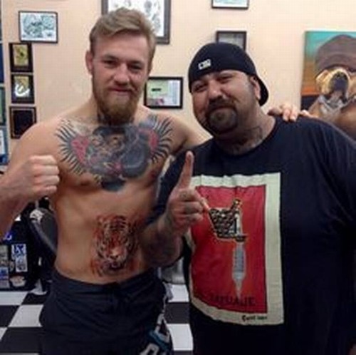 O desafiante ao cinturão dos pesos penas do UFC, Conor McGregor, fez uma nova tatuagem antes do confronto contra o campeão José Aldo no UFC 189. Trata-se de um tigre, que cobre a região do umbigo do irlandês que também possui um gorila à altura do peitoral. A divulgação foi feita pelo Studio Sideshow Tatoo.