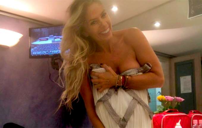 Adriane Galisteu deixou muito marmanjo babando na noite deste domingo (19). A loira esbanjou sensualidade em uma foto ousada postada em seu Instagram , na qual aparece seminua , segurando apenas um vestido na frente dos seios. Na legenda assina: "Desmontando Helena" , se referindo à sua personagem na peça Tróilo e Créssida, de William Shakespeare, dirigida por Jô Soares.
