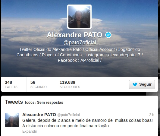 Depois de vários boatos e vai-e-vens do casal formado por Alexandre Pato e Barbara Berlusconi , o jogador do Corinthians resolveu ir ao twitter e contar que os dois não estão mais juntos.