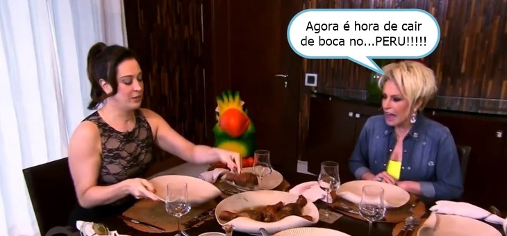 Na ocasião, Ana Maria fez uma visita para Claudia Raia, que preparou a iguaria especialmente para ela e o seu fiel e inseparável papagaio Loro José. Se não bastasse o fato de fazer trocadilhos com o prato, a loira aprontou muitas outras coisas no programa desta sexta. O momento vergonha alheia do dia foi a sua aula de sapateado com direito a salto alto e tudo mais, nem preciso dizer que Ana se saiu tão bem quanto a na vez em que ela tentou dançar uma musica da Madonna.