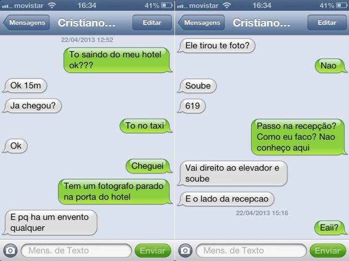 Para provar o encontro, a loira divulgou as mensagens que trocou com o português: