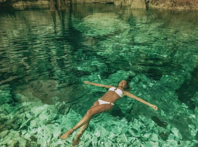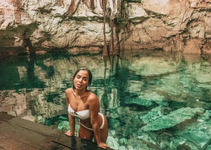A cantora vem compartilhando com os seguidores várias fotos em cenários paradisíacos em Tulum, no México.