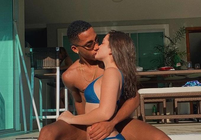 Aos 15, Mel Maia posa de biquíni aos beijos com jogador do Fluminense