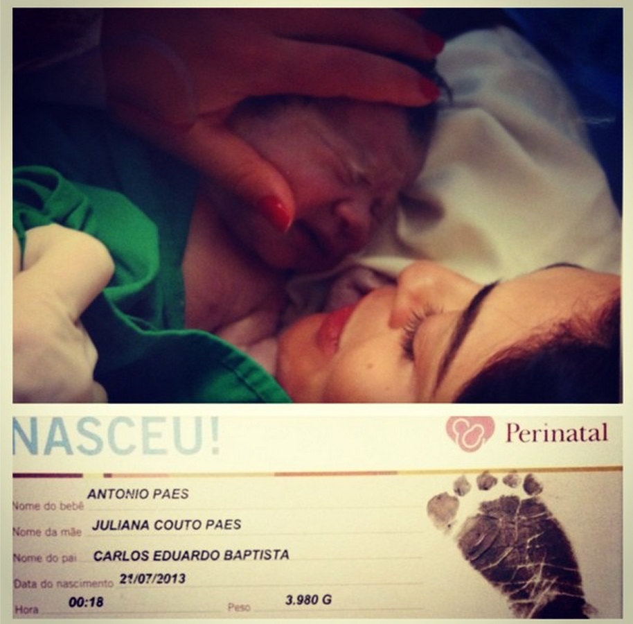 Mãe coruja, a atriz disse aos repórteres que a esperavam na porta do hospital: "Estou transbordando de felicidade! Ele é a cara do Pedro". Antes de deixar a maternidade, Juliana não fez mistério e logo publicou uma foto do menino "É felicidade demais! Estou explodindo de alegria e queria dividir com vocês! Obrigada por tantas mensagens de carinho. Com amor, Ju. Kate e eu sabemos!", escreveu no Instagram, se referindo também ao filho de Kate Middleton com o Príncipe William, que nasceu na segunda-feira.