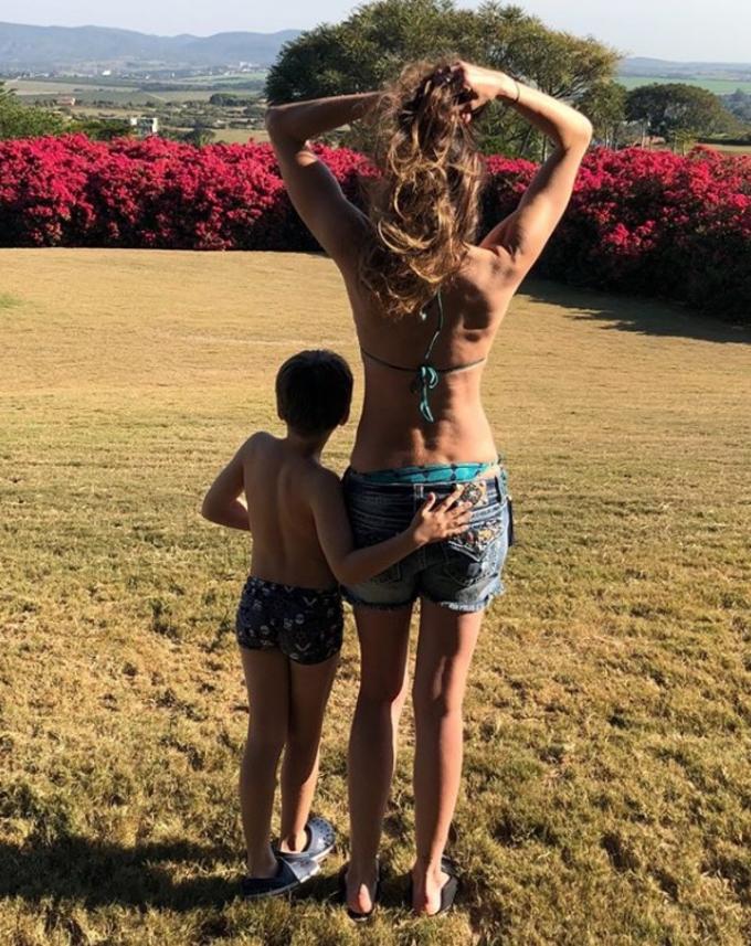 Luciana e o herdeiro aparecem se divertindo em vídeos gravados por uma terceira pessoa, que não dá para afirmar ser Bruno, mas com certeza não é o primogênito Lucas, que está viajando.