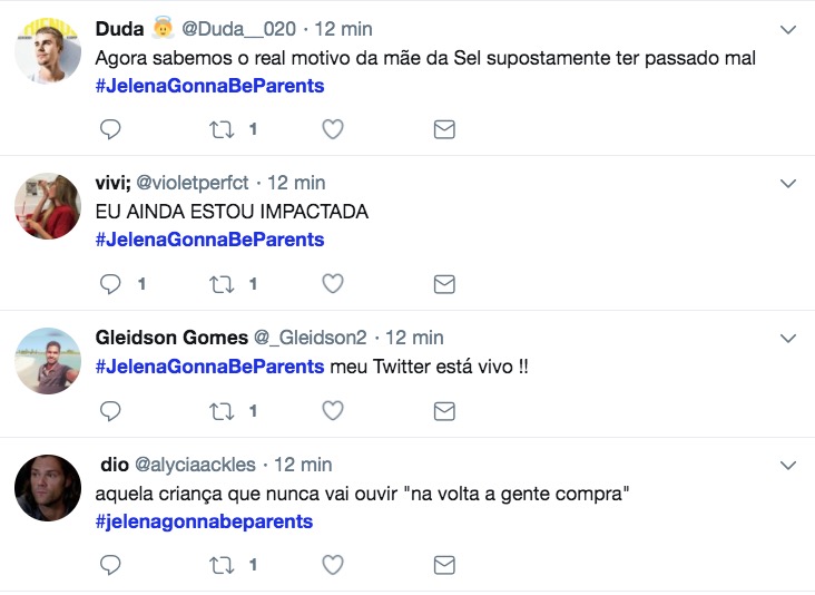 A hashtag “Jelena Gonna Be Parents” é um dos assuntos mais comentados do Twitter nesta terça-feira (19).