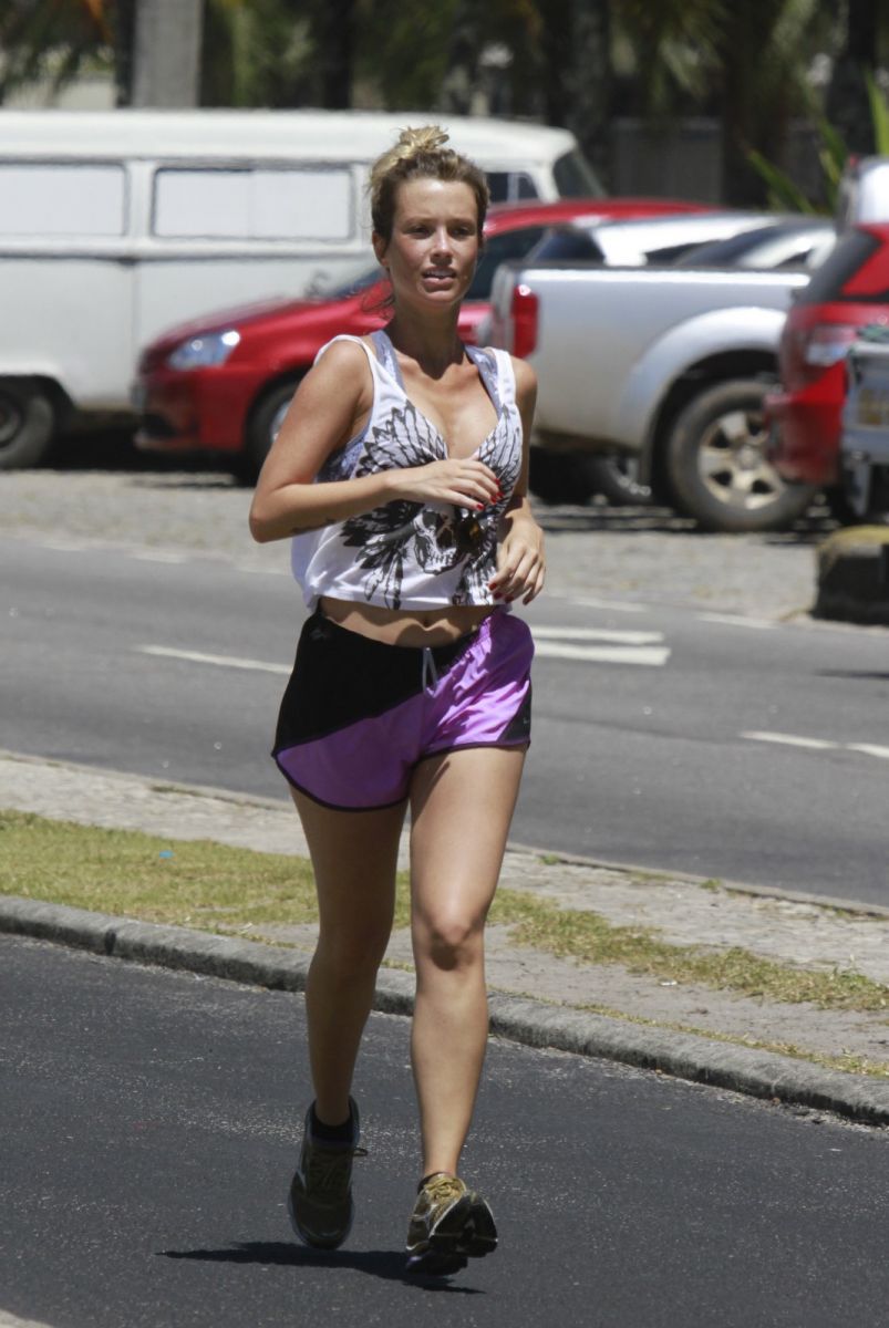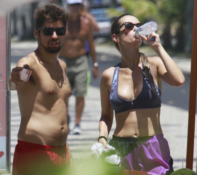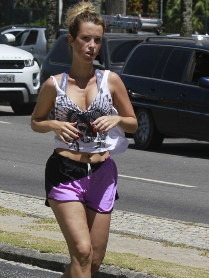 Juliana Didone resolveu se exercitar e curtir a tarde desta quarta-feira, 8, na Praia da Barra da Tijuca, no Rio de Janeiro. Em entrevista ao site do jornal 'Extra', a atriz contou que só não está mais satisfeita com o corpo porque está com dois quilinhos acima do peso.