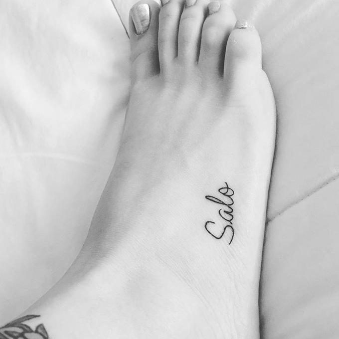 A ex-bbb mostrou que fez uma tatuagem com o nome "Salo", na lateral do pé.