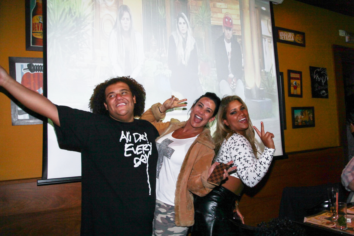 O grupo de amigos, se diveritu, dançou e colocaram perucas, imitando a famosa ‘cabeleira’ característica de Gominho. O ex-peões, também aproveitaram, para asssitir ao vivo, o programa comandado pelo jornalista e apresentador Britto Junior, que acabou tirando fora da disputa de R$ 2 milhões o modelo Matheus Verdelho (o último eliminado antes da final).