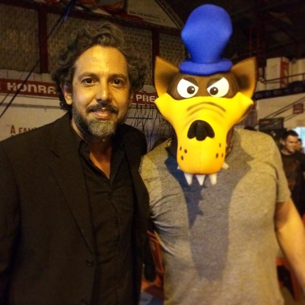 Alexandre Nero, que interpreta co Comendador José Alfredo, deu um tempo no visual fechado do personagem e apareceu de bermuda e com uma máscara do lobo mau. Ele até encontrou um homem fantasiado do seu personagem.