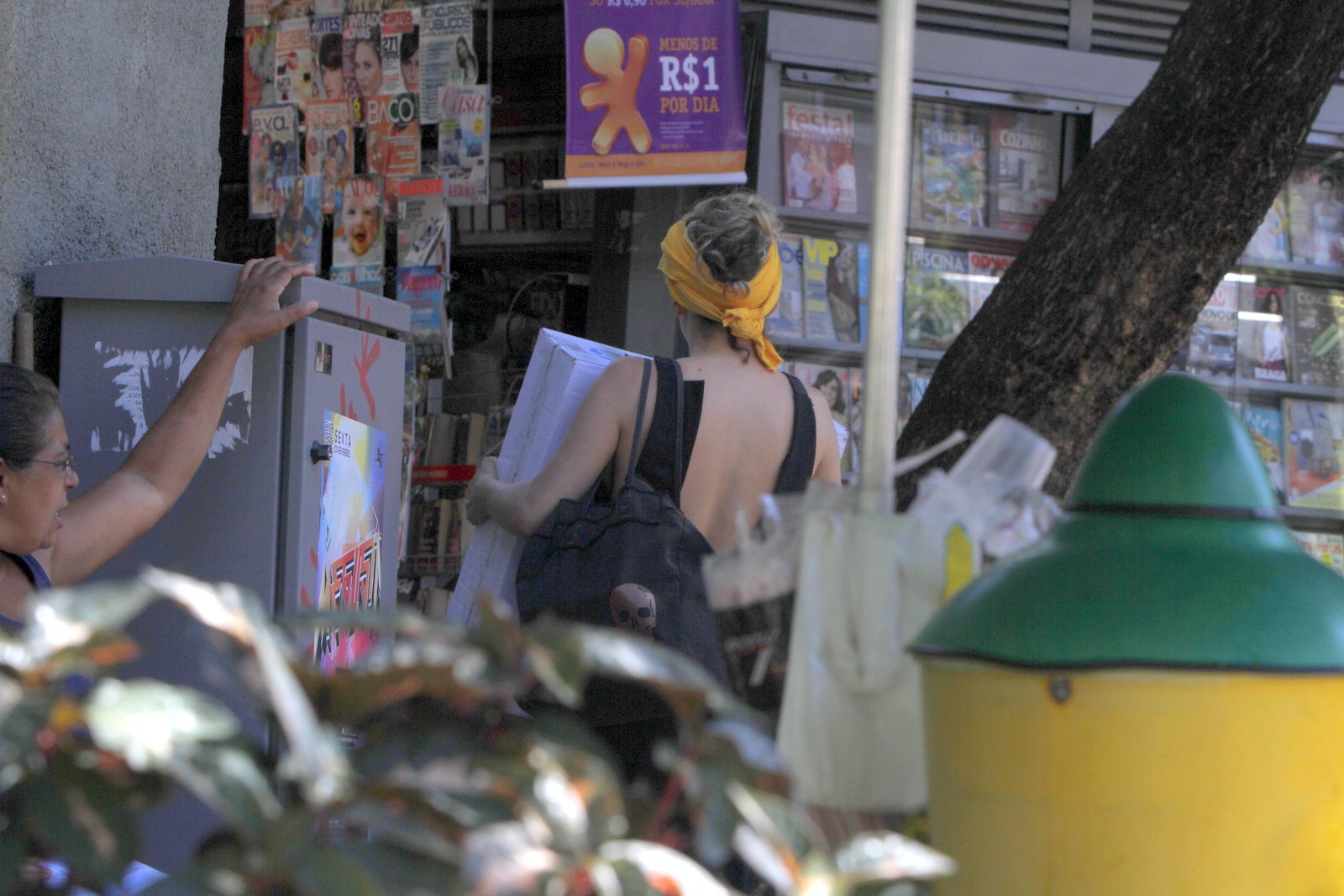A atriz parou o carro e carregou uma caixa com computador para a sua clínica de estética que está em obras. A clínica fica em Ipanema e vai inaugurar em breve.