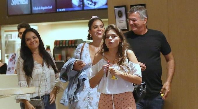 Bruna Marquezine tirou o final de semana para curtir a companhia da família e foi clicada no Cinema do Village Mall, na Barra da Tijuca, zona Oeste do Rio de Janeiro.