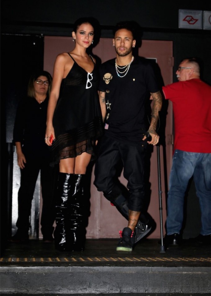 Bruna Marquezine e Neymar chegaram juntos à festa de aniversário da irmã do craque, Rafaella Santos, na noite desta segunda-feira (19) em uma boate em São Paulo.