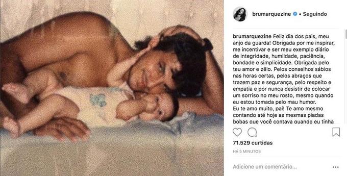 Início Famosos & TV Bruna Marquezine faz textão em homenagem ao pai e mostra foto bebê