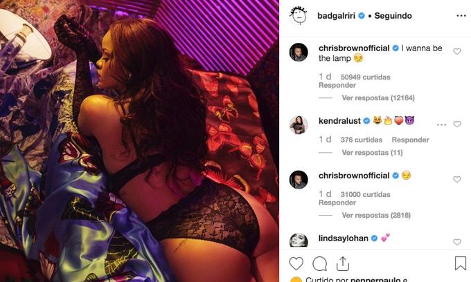 Chris Brown, ex-namorado da cantora que a agrediu duas vezes em 2009, comentou na postagem dando uma cantada na cantora. “Queria ser a lâmpada (que aparece na foto) seguido de dois emojis safadinhos.