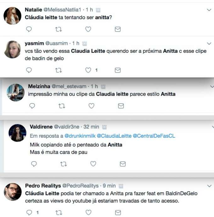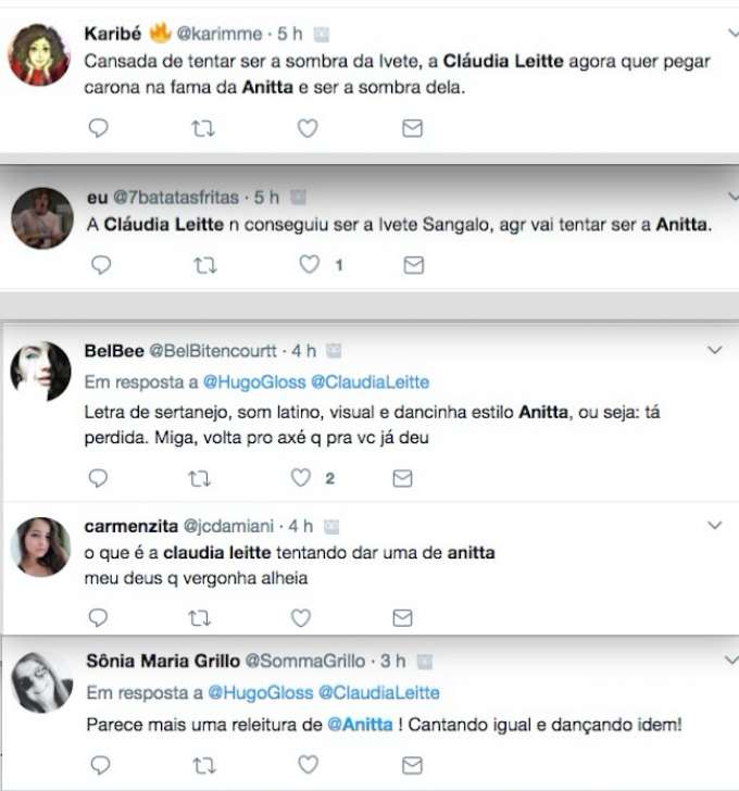 Enquanto muitos fãs elogiaram o novo trabalho da cantora, outros não deixaram de notar as muitas semelhanças com Anitta. Isso porque além de estar com o estilo parecidíssimo com o da carioca, e rebolar de forma muito semelhante à de Anitta no clipe "Paradinha", Leitte ainda resolveu arriscar um espanhol nas músicas.