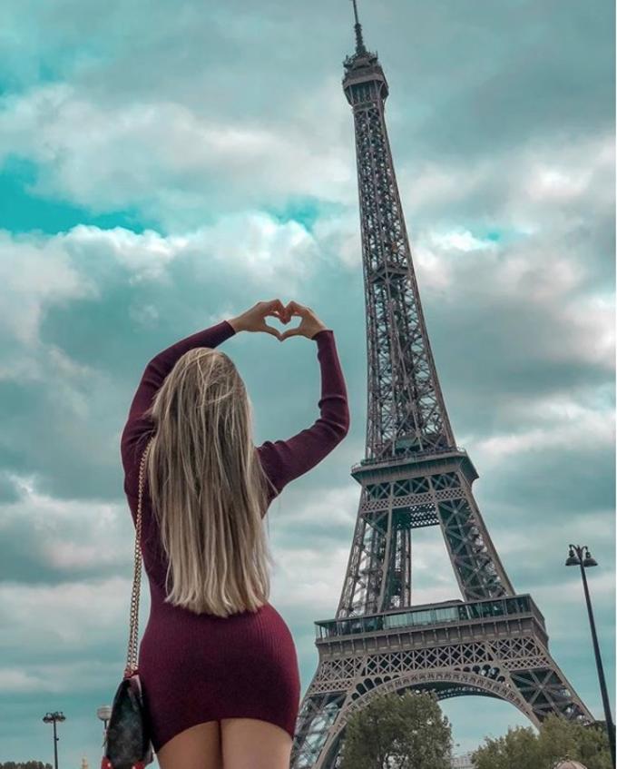 Antes da Grécia, Mariana esteve em Ibiza, Chile e em Paris onde posou na Torre Eiffel.