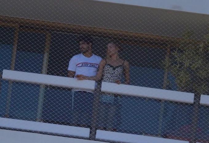 A artista, que foi clicada com uma camisola curtinha enquanto observava o movimento das ruas, já havia contado aos seguidores que está isolada com o galã.