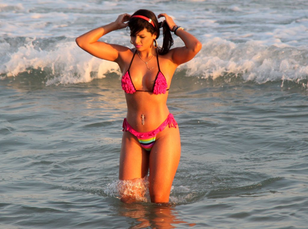A Musa do Santos Janine Machado passou a tarde do sábado (4) desfilando sua beleza na praia da Barra da Tijuca, onde dividiu olhares dos banhaistas ao lado de Nicole Bahls - RJ.
