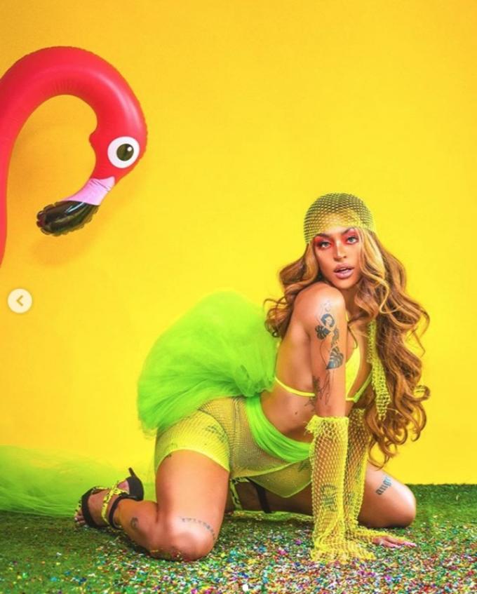 O cantor  - que gosta de ser chamado pelo pronome masculino quando não está de drag queen - surgiu com a cara lavada, e a roupa íntima marcada.