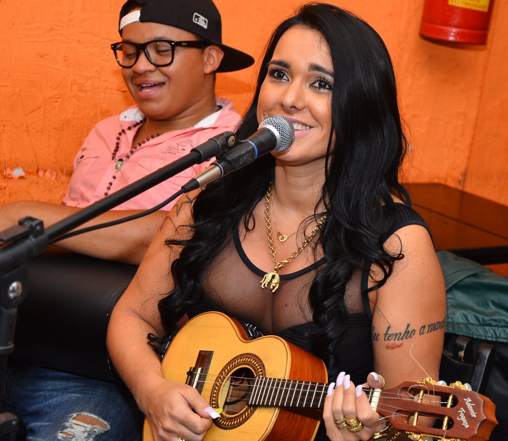 Kamyla Simioni, a ex-amante de Tony Salles, apareceu decotada numa samba de roda em um barzinho localizado na Zona Norte de São Paulo.