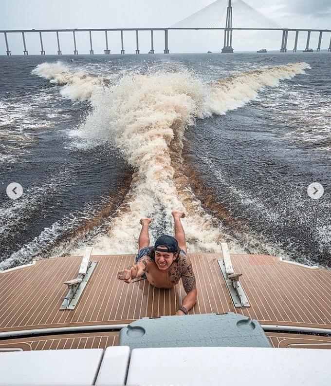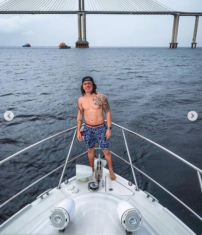 O youtuber, que esteve em Manacapuru nessa sexta, ostentou a barriga sarada em um iate de luxo durante um passeio pelo Rio Negro neste sábado.