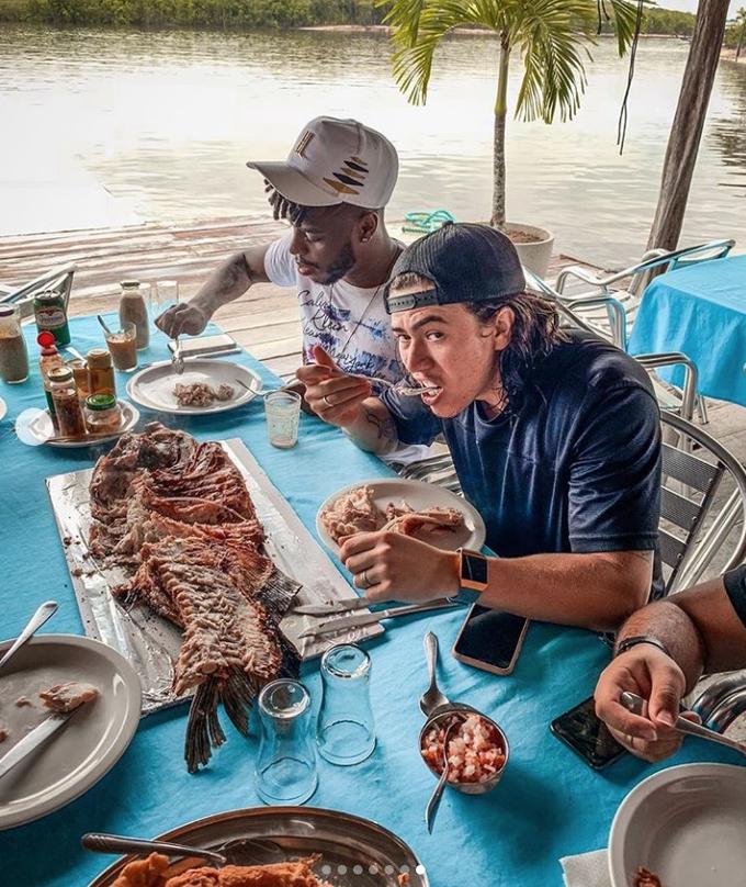 Em Manaus, Whindersson Nunes come tambaqui e mostra passeio em iate: ‘Respeita’