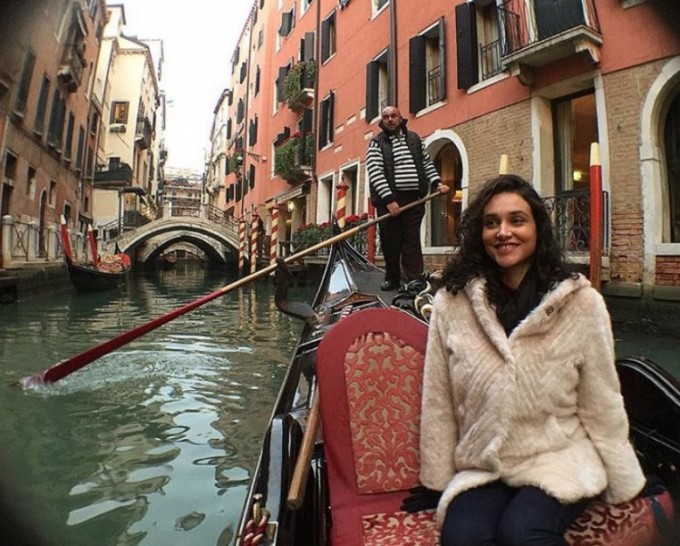 Nesta quinta-feira (23), a atriz publicou uma foto mostrando o barrigão durante um passeio por Veneza.