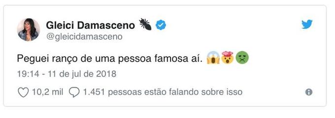 A acreana afirmou que pegou ranço de alguém famoso, com a frase acompanhada de um emoji vomitando.