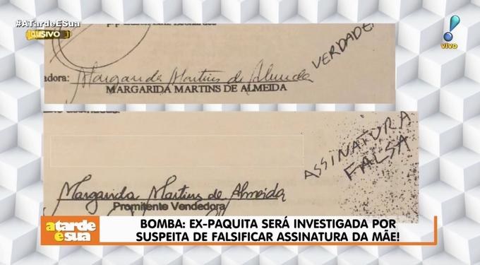 O documento que contém a possível falsificação de assinatura passa a posse do imóvel de Margarida para a ex-paquita.