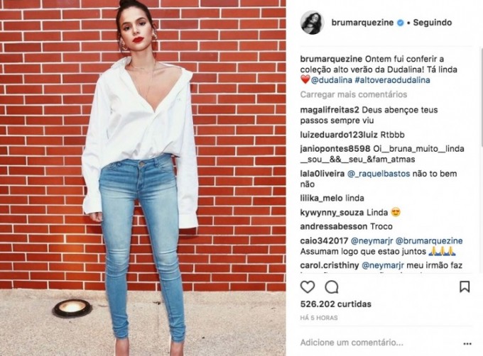 No Instagram, a empolgação dos fãs foi tanta que os internautas encheram a foto da atriz de comentários do tipo: "Assumam logo que estão juntos", "Neymar curtindo kkkk amo", "ele sabe como marcar território", "que lindo Neymar, continue", "com direito a curtida do Neymar", "Goooool.... Tomaaaa.... Olha a curtida do Neymar aí GEEENNTE".