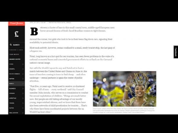 A atriz Juliana Alves aparece em uma materia do jornal "Los Angeles Times", dos Estados Unidos, sobre turismo sexual no Brasil.