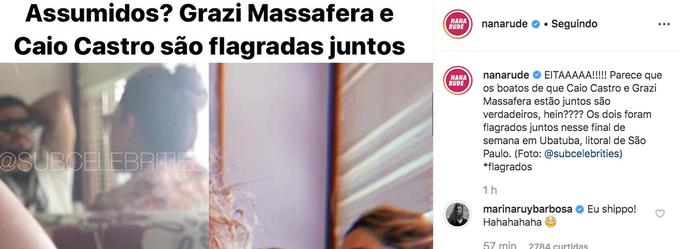 Neste domingo (15), o perfil Subcelebrities divulgou as imagens no Instagram. "Grazi e Caio em Ubatuba", escreveu o autor do flagra.