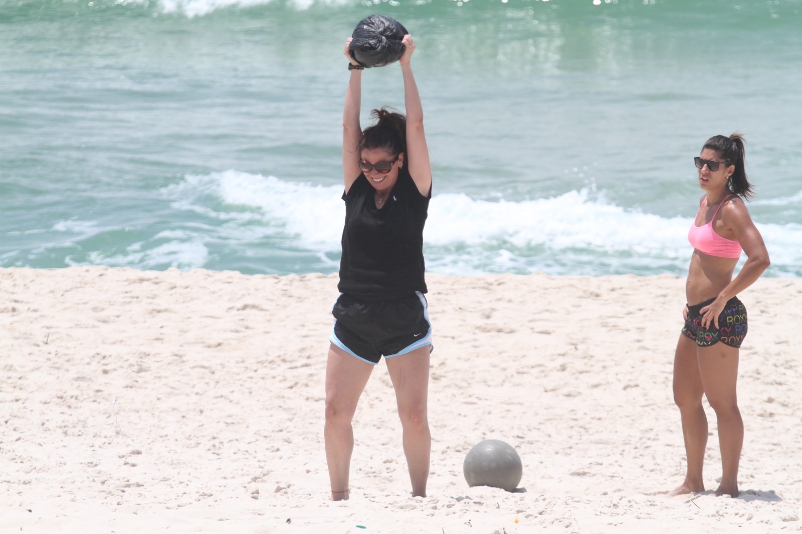 Depois de curtir a ceia e o "R.O', Giovanna Antonelli colocou a camisa pra suar nesta quinta-feira 26, se exercitando na praia do Leblon, no Rio de Janeiro, para perder as calorias que ganhou no Natal. Com a ajuda de uma personal trainer, ela praticou uma série de movimentos aeróbicos. Depois, aproveitou para se refrescar no mar.